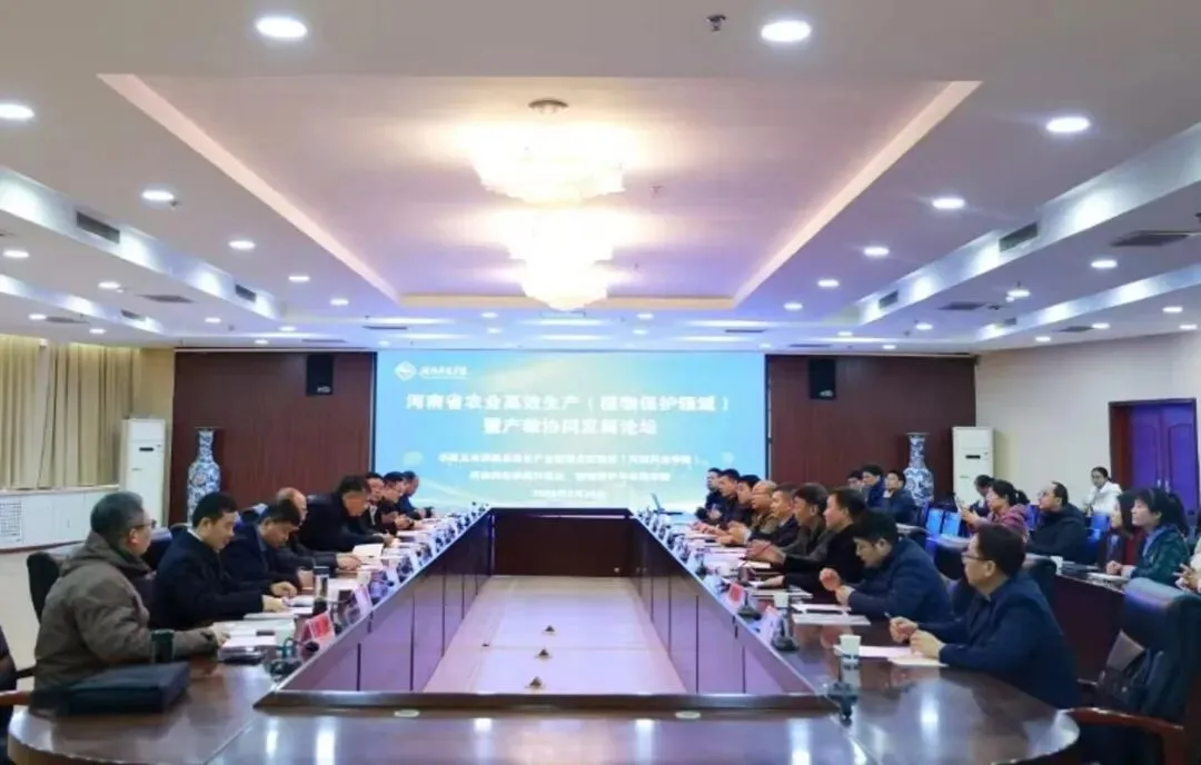 2月26日,由河南省农业农村厅农药管理处与河南省植物保护检疫站联合主办,小麦玉米两熟高效生产全国重点实验室(河南科技学院)承办,河南科技学院科技处、实验室与设备管理处、植物保护与环境学院协办的河南省农业高效生产(植物保护领域)暨产教协同发展论坛在该校举行。河南省植物保护检疫站站长张国彦、河南省农业农村厅农药管理处副处长史清学、西北农林科技大学植物保护学院教授冯浩等10余家单位的相关负责人、专家和企业家出席会议。河南科技学院副校长胡铁柱、实验室与设备管理处、科技处、植物保护与环境学院负责人及教师代表50余人参加会议。