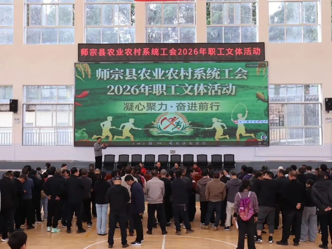 为丰富干部职工精神文化生活,凝聚干事创业奋进力量,2026年3月4日,师宗县农业农村系统工会“凝心聚力、奋进前行”主题职工文体活动成功举办,系统工会197名会员全员参与,以文化润心、以运动聚力,充分展现了农业农村系统干部职工昂扬向上、团结奋进的精神风貌。