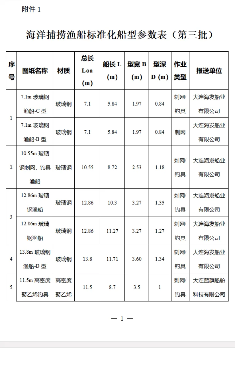 附件:1.海洋捕捞渔船标准化船型参数表(第三批)