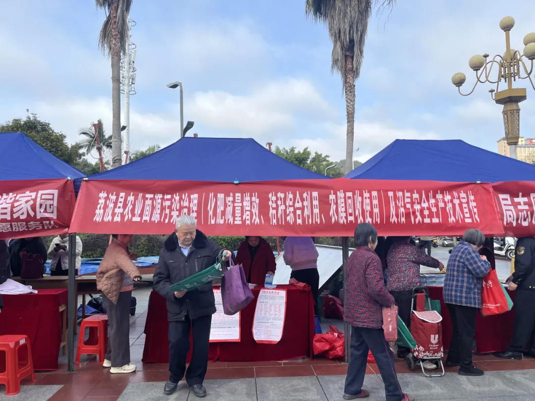 在活动现场,农技骨干采用印发图片、发放宣传资料以及现场解答等多种方式,向群众广泛宣传科学使用农药、化肥减量增效、测土配方施肥技术、秸秆综合利用、农膜回收利用、沼气安全使用等关键技术,并对《土壤污染防治法》《农用薄膜管理办法》《植物检疫条例》等相关法律法规进行现场解读。现场向群众发放荔波县化肥减量增效及农业生产包装废弃物回收明白卡、秸秆综合利用、农膜回收利用、受污染耕地安全利用、柑橘黄龙病防治等资料700余份,接待群众咨询120人次。