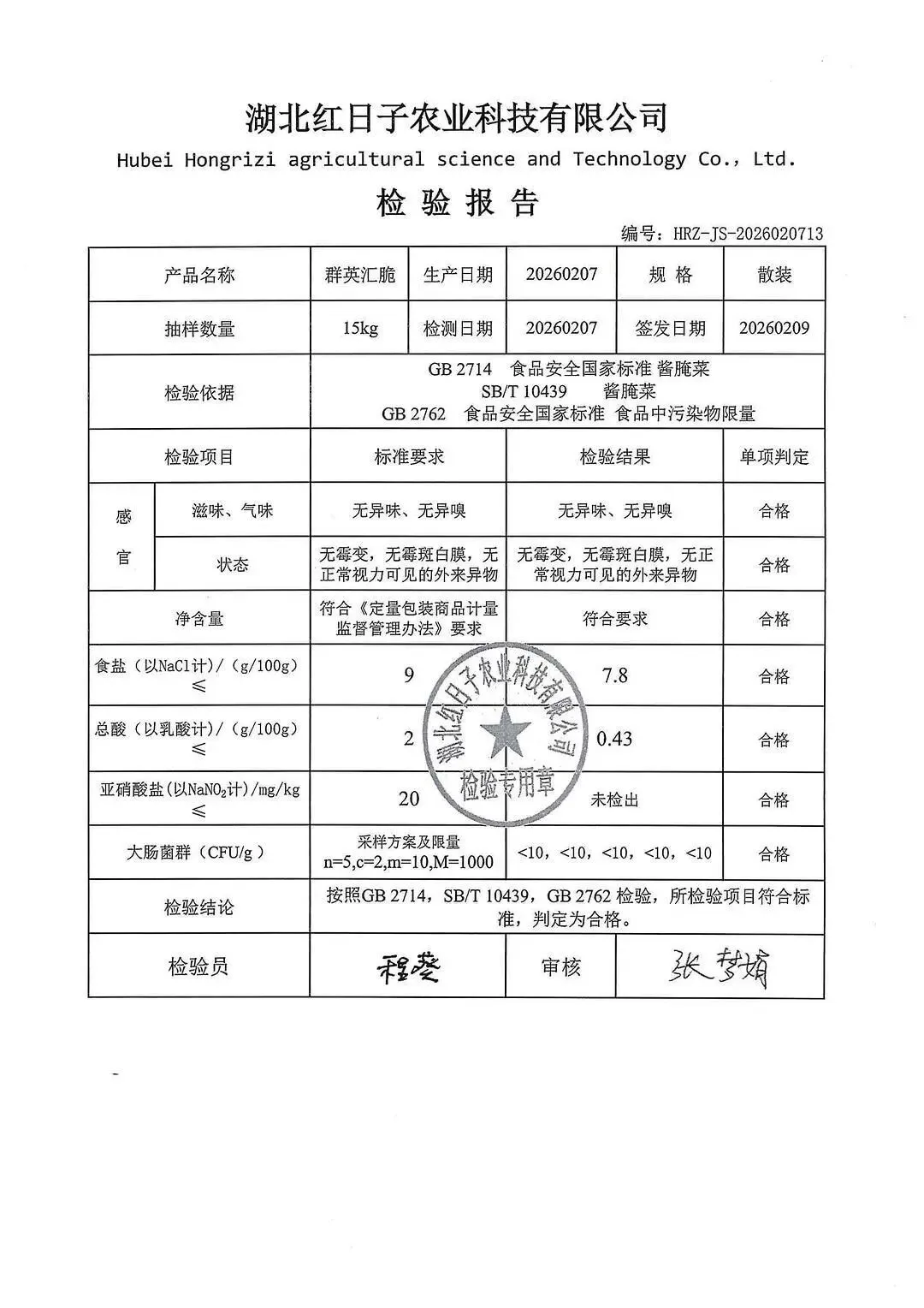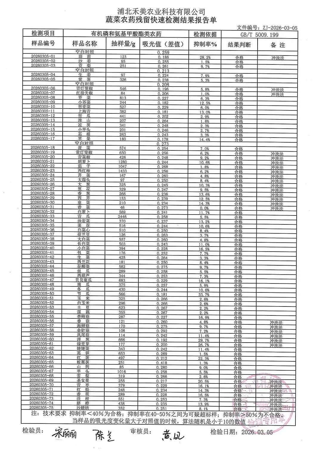 金浦供应链&禾美农业-03月06日蛋类、酱腌菜、肉类、蔬菜、水豆腐、鲜湿淀粉条检测 报告