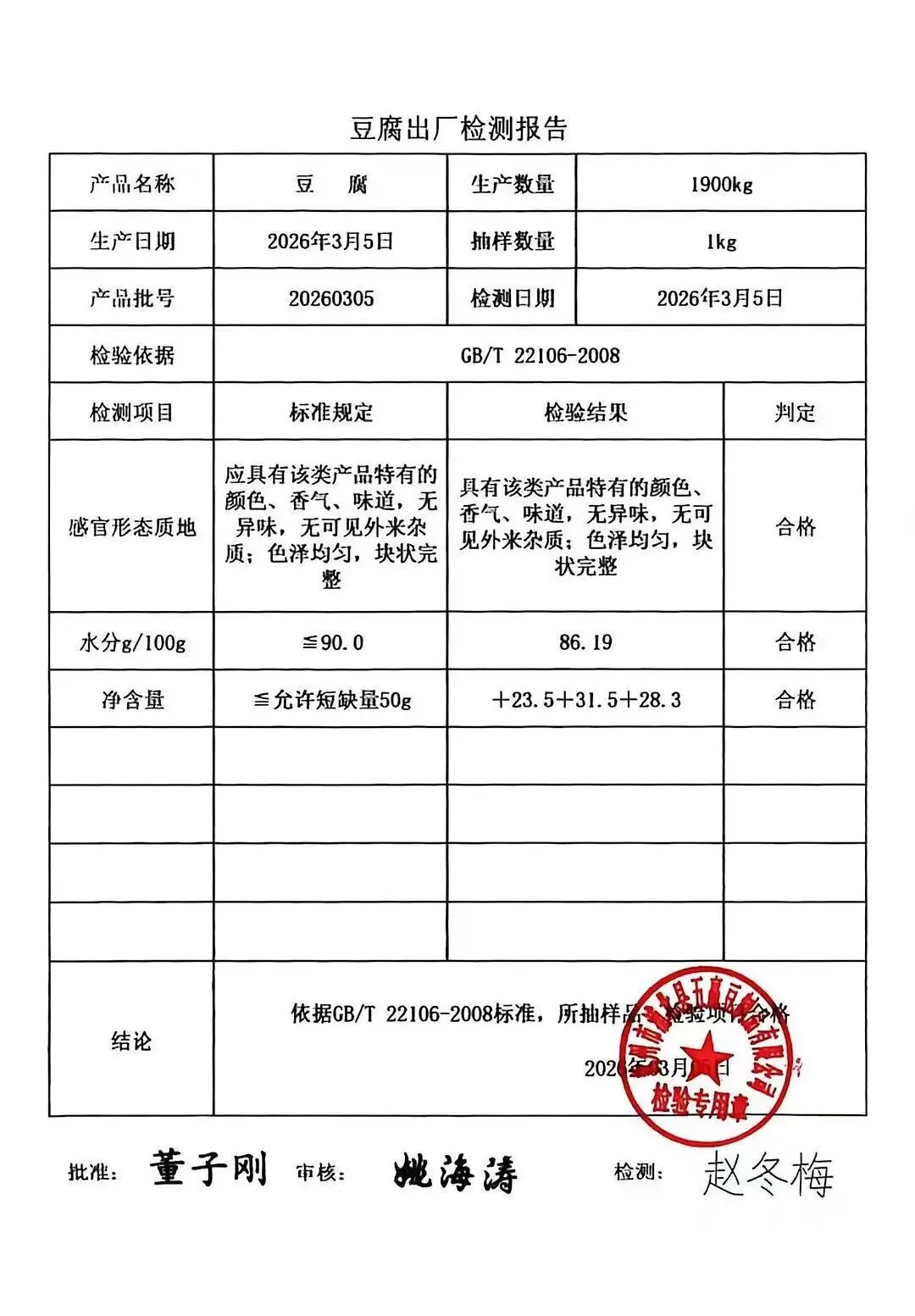 蛋类、酱腌菜、肉类、蔬菜、水豆腐、鲜湿淀粉条检测报告