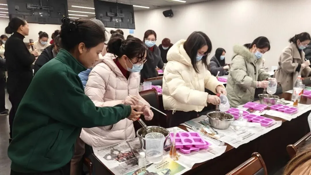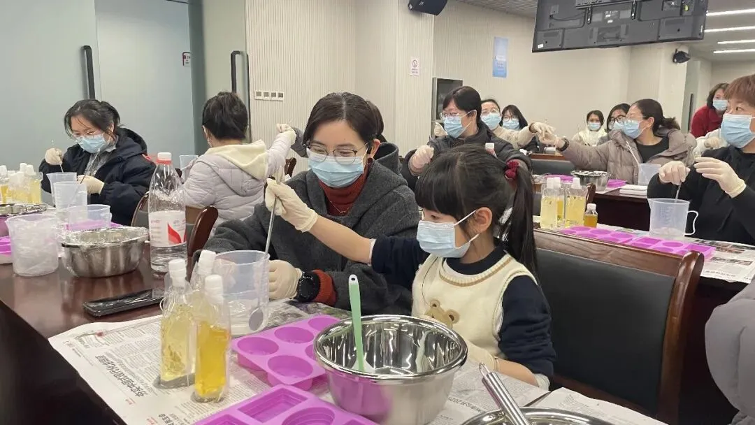 在手工皂制作环节,大家在王老师的指导下,将环保酵素与天然原料科学配比,历经称量、搅拌、入模、定型等步骤,亲手制作出天然温和、可自然降解的环保手工皂。从原料融合到成品成型,每一步都充满动手乐趣,参与者相互协助、交流心得,在创作中体会“减塑降污、循环利用”的生活智慧,切实感受绿色生活方式带来的成就感。