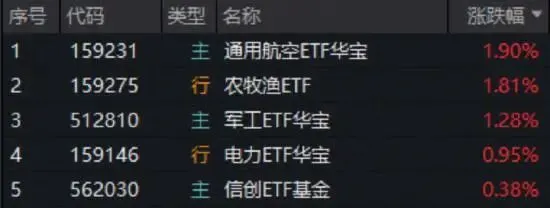 盘面上,农业概念活跃,种业板块多股涨停,全市场唯一农牧渔ETF(159275)逆市大涨1.81%;军工快速反击,军工ETF华宝(512810)、通用航空ETF华宝(159231)场内双双大涨超1%;AI算力引爆电力需求,电力电网板块继续活跃,“HALO”核心资产——电力ETF华宝(159146)场内反包收涨近1%,创上市收盘新高。下跌方面,券商股大面积下跌,券商ETF(512000)场内价格跌逾2%。