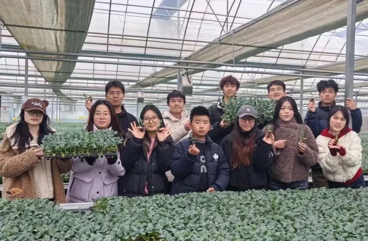 产业振兴是乡村振兴的重中之重,发展农业新质生产力是提升现代农业核心竞争力的关键。为精准把握农业向自动化、数字化转型的强劲动能,同学们最后来到了万联农业科技有限公司。面对年育苗量达1.2亿株的自动化流水线与“一年六茬”的高效生菜种植技术,团队深入考察了智能育苗大棚的恒温恒湿控制系统与标准化生产流程。