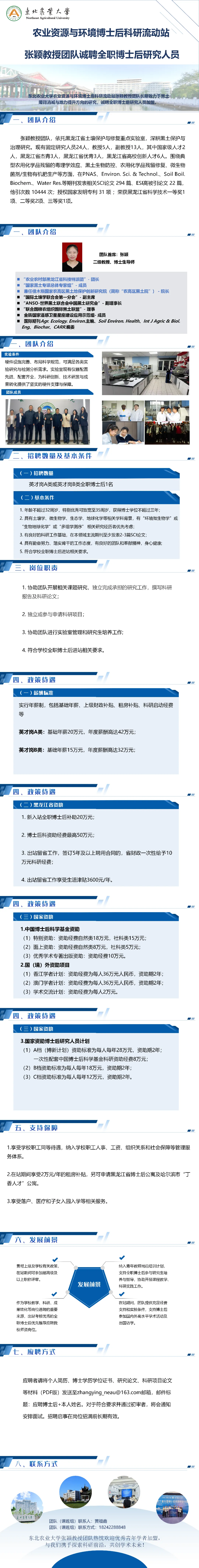 第三期:东北农业大学农业资源与环境博士后科研流动站张颖教授团队诚聘全职博士后研究人员