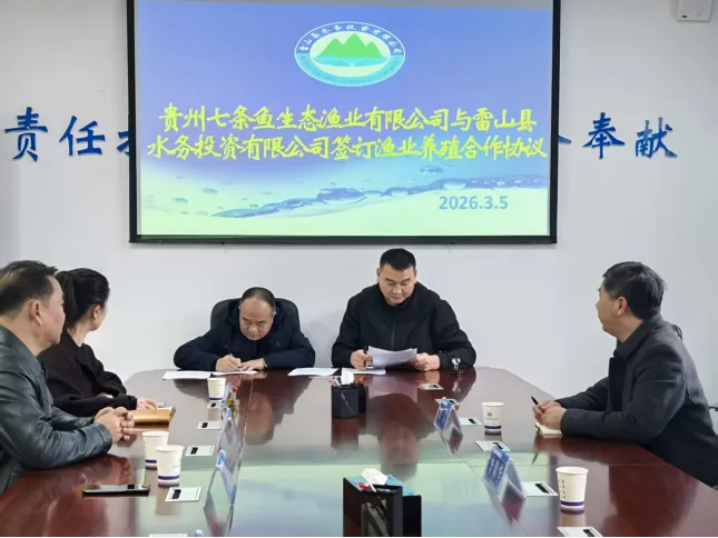 3月5日,贵州七条鱼生态渔业有限公司与雷山县水务投资有限公司、大塘镇新塘村村民委员会在雷山县水务投资有限公司成功举行九十九水库租赁合作签约仪式。县农业农村局、县水务局分管负责同志到场参加。