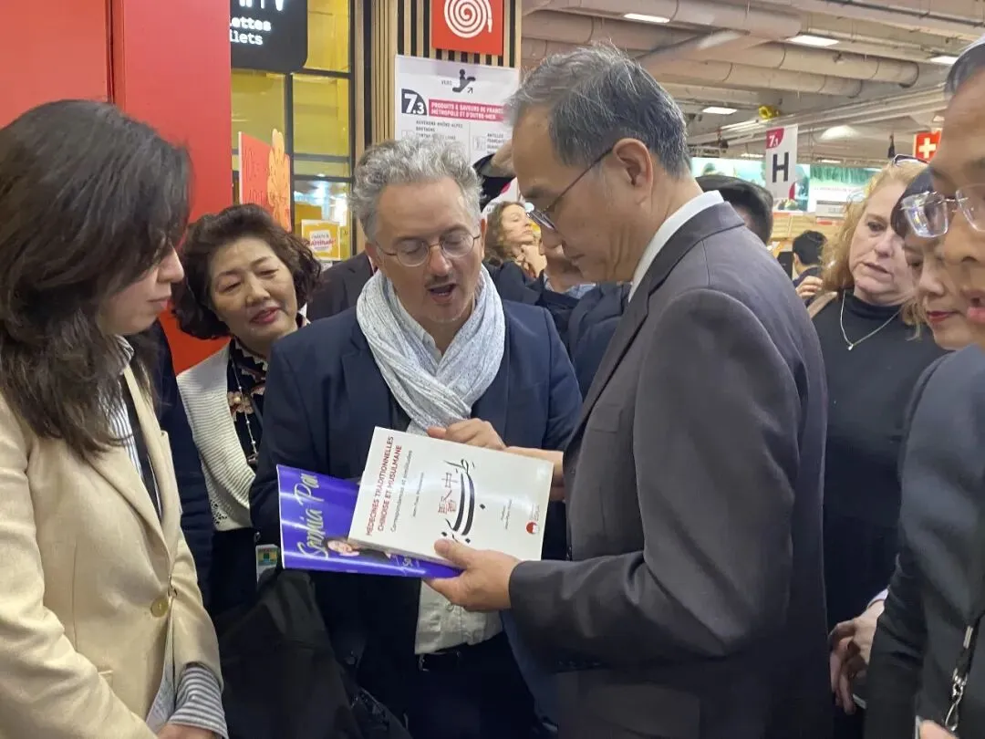 国际食品与药用植物研究院名誉院长Jean-Yves Moisseron教授向邓励大使赠书。