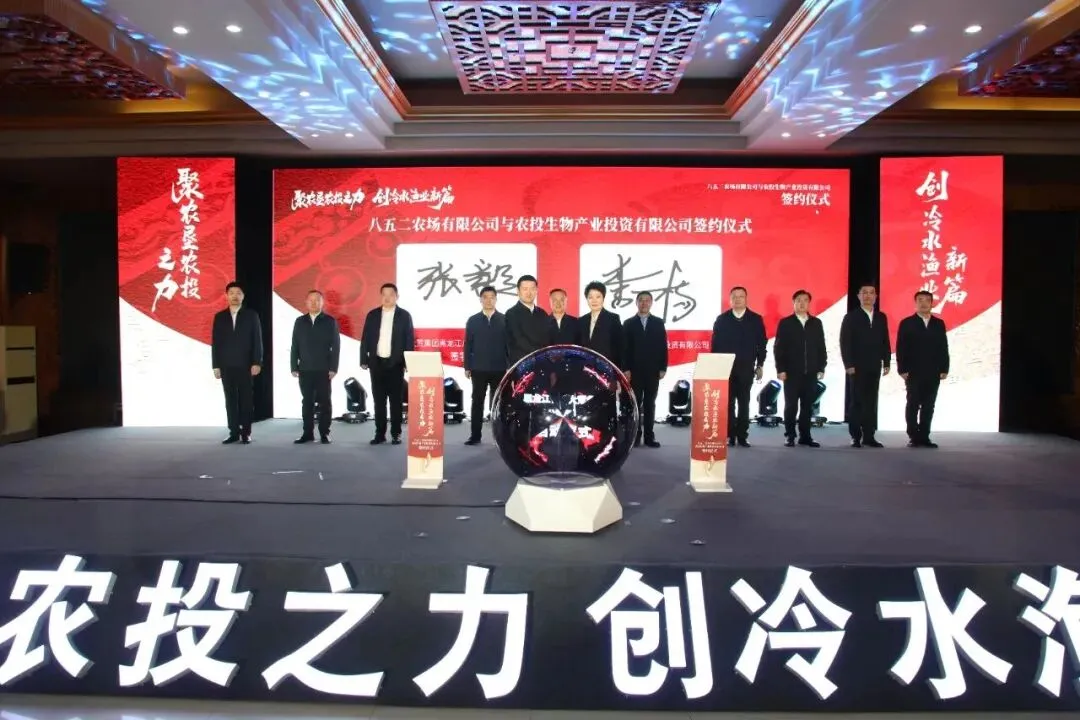 3月5日,黑龙江省农投生物产业投资有限公司与北大荒八五二农场举办签约仪式,标志着双方共建的冷水鱼业高质量发展示范基地项目正式落地。农投生物党委书记、董事长、总经理李杨,红兴隆分公司党委委员、副总经理尚联合及相关领导出席签约仪式。