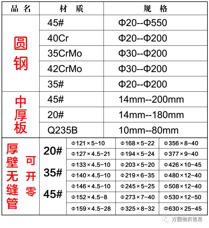 圆钢 中厚板