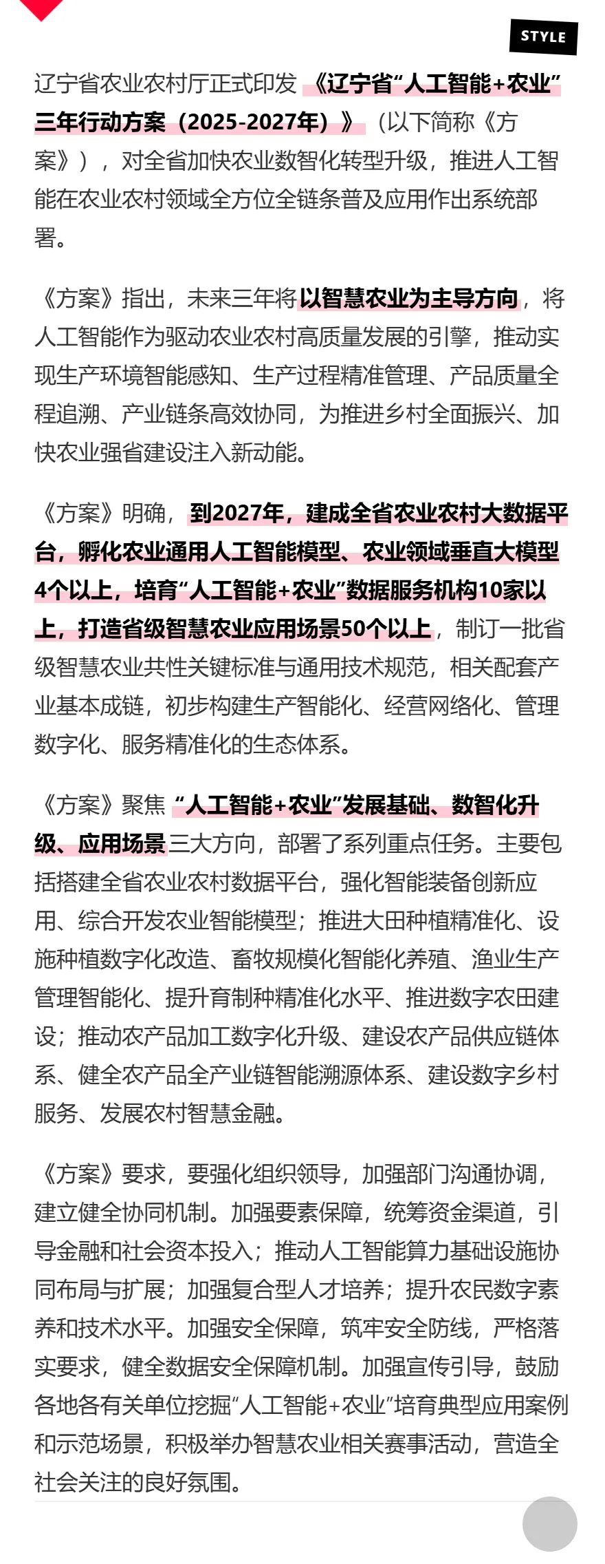 辽宁:“人工智能+农业”三年行动路线图