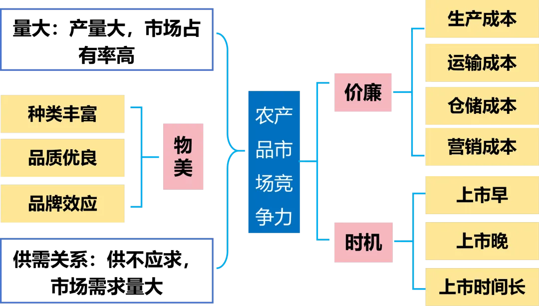 7.农业产业融合:是以农业为基础,通过延伸产业链、拓展功能、跨界结合,实现农业 + 工业 + 服务业相互渗透、交叉重组,形成一、二、三产业融合发展的现代农业模式。一般用于对农业可持续发展的方向的考查。