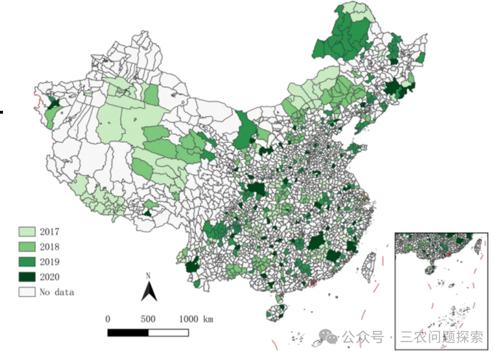 本研究探讨国家级特色农产品优势区。在特色农产品优势区申请和认定过程中,某些情况下,同一地级市下的多个县、县级市或市辖区会联合建立特色农产品优势区示范区。在这种情况下,我们将对应地级市特色农产品优势区示范区下的所有县级单位统一划入处理组。此外,如果一个县级地区被多次认定为特色农产品优势区,本研究以其首次被认定的年份作为处理年份。