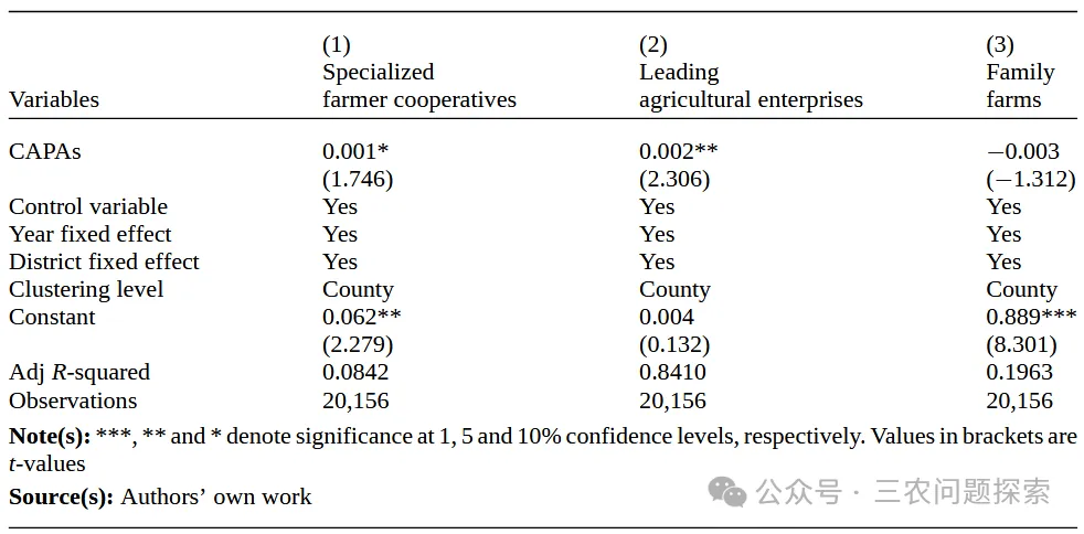 H3:高价值农业通过促进农民合作社、农业龙头企业和家庭农场的发展,升级农业经营主体,从而缩小城乡收入差距。