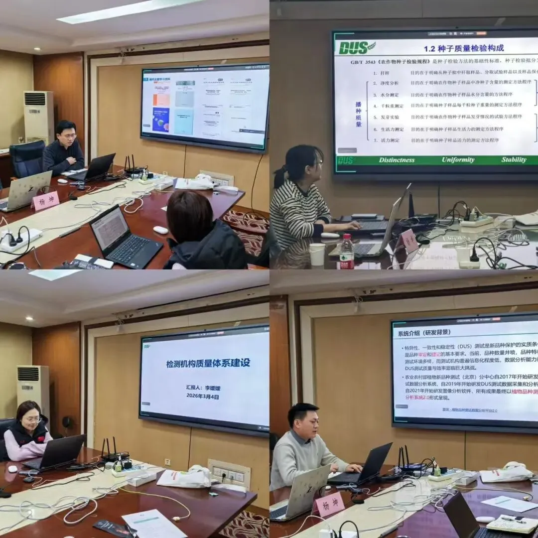 2026年3月4日,农业农村部植物新品种测试(北京)分中心在京成功召开了“DUS测试和种子检验质量控制研讨会”,本次会议旨在进一步夯实测试质量,提升工作效率,促进科研成果应用。会上,北京市种子管理站吴明生科长、农业农村部蔬菜种子质量监督检验测试中心徐秀兰主任围绕转基因种子检验、种子扦样主题进行专门授课。农业农村部植物新品种测试(北京)分中心杨坤副主任和付深造博士、任君博士等围绕植物品种DUS测试试验设计与统计分析、植物品种DUS测试原理与方法、种子质量检验原理与方法等主题开展专题讲座。北京分中心全体人员参加了学习和研讨。