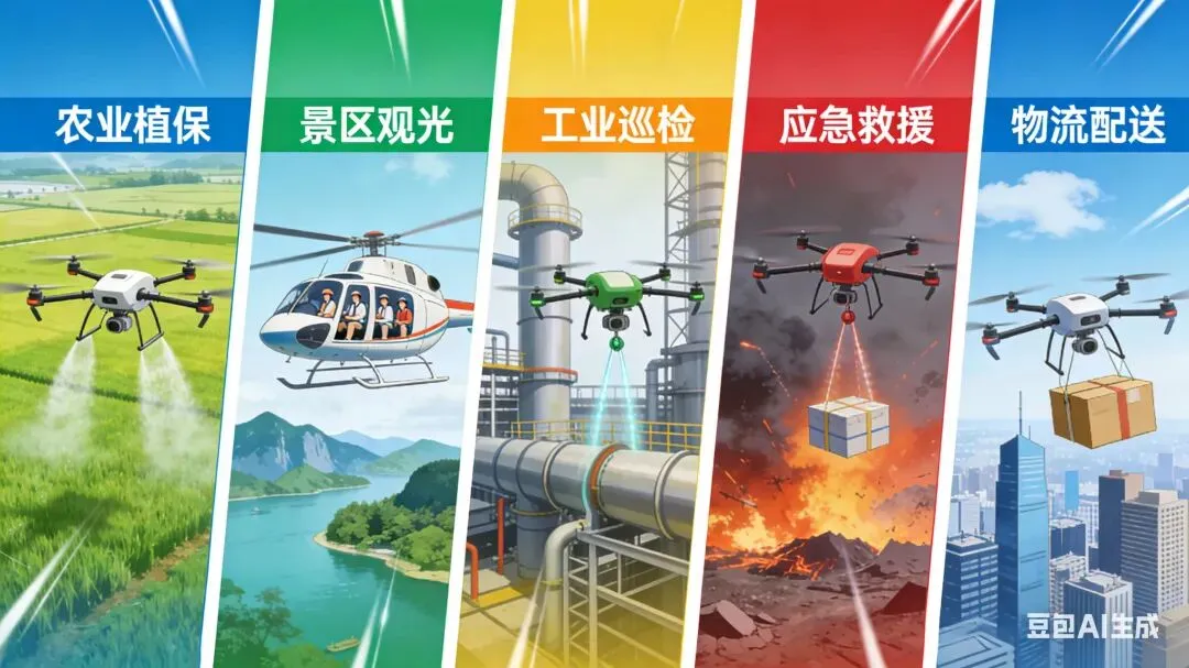 #无人机应用场景 #低空物流 #农业植保 #低空文旅 #工业巡检