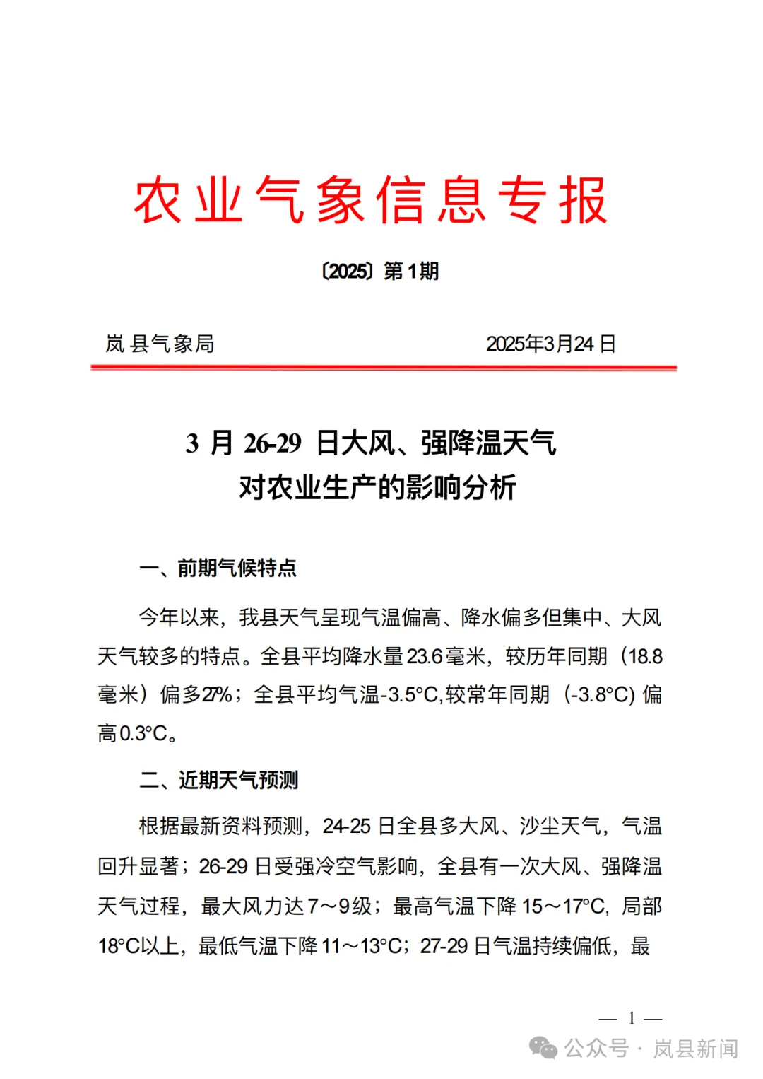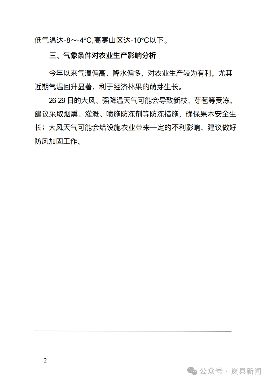 【气象岚县】农业气象信息专报