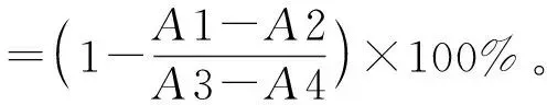 式(3)中,A1为样品吸光值,A2为空白对照吸光值,A3为阴性对照吸光值,A4为空白阴性对照吸光值。