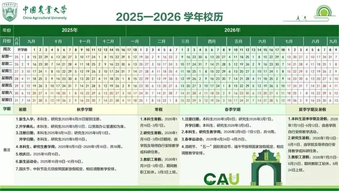 农大春季学期教学日历