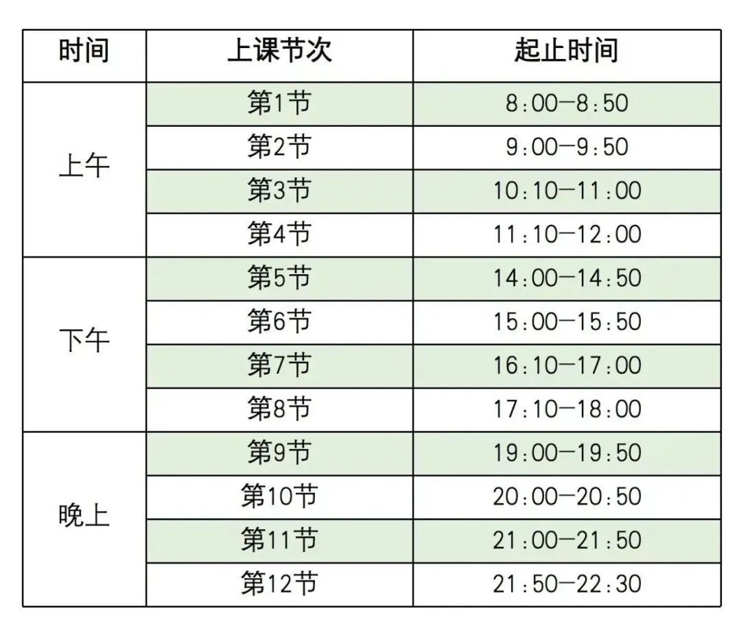 农大上课时间表