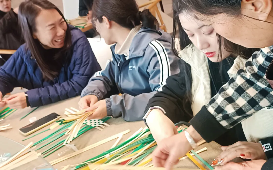 午间,职工们齐聚熊猫餐厅,品尝地道的崇州农家风味美食。鲜香的田园美食、温暖的春日阳光、轻松的交流氛围,让大家在繁忙的工作之余得以舒缓疲惫,尽情享受田园的诗意和团队的温情。稍作休息后,备受期待的“匠心体验”环节准时开启。在非遗传承人的耐心指导下,职工们亲身体验拥有千年历史的道明竹编这一非遗技艺。劈竹、拉丝、编织,随着指尖的舞动,柔韧的竹丝逐渐构成精美的图案;在经纬交织之间,不仅凝聚着非遗文化的匠心之美,更编织出同事间互帮互助、默契配合的深厚情谊。当一件件亲手制作的竹编作品完成时,大家的脸上都洋溢着满满的成就感和幸福感。