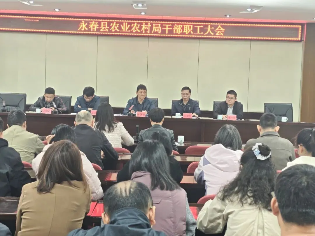 3月5日上午,县农业农村局召开全体干部职工大会。会议由局党组书记林琪宇主持,局领导班子成员、局机关全体干部职工、各乡镇畜牧兽医站参加会议。