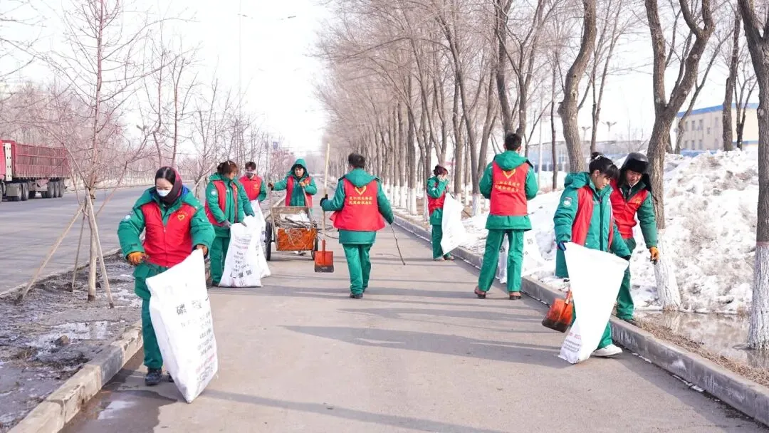 活动当天,各分子公司员工手持工具对生产车间进行整理清洁,并清扫厂区积雪残冰,全员配合有序,分工协作,共同营造整洁有序的工作环境。