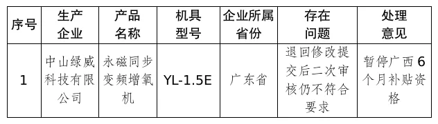 广西2025年度第四批农机购置与应用补贴违规投档产品处理意见表