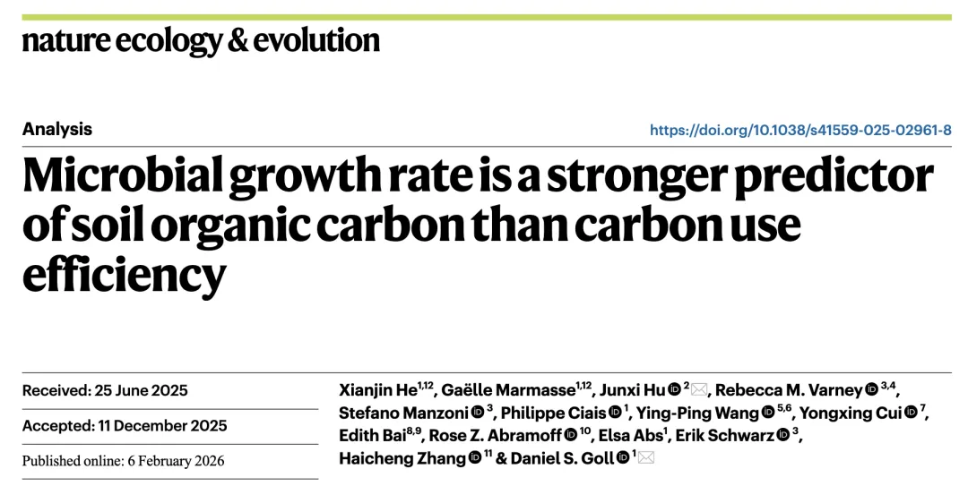 【转化】四川农业大学胡峻嶍副教授等 NEE论文 || 别再迷信CUE!研究发现:微生物生长速率才是土壤碳库更强的“风向标”