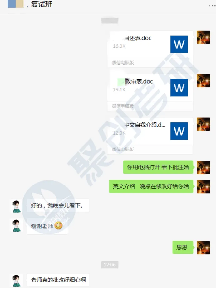 文书批改包含复试所需各类文书与话术批改,包括中英文自我介绍修改、导师联系话术与邮件修改、简历修改、自荐信修改、自述表修改、政审表修改、思想政治表现审查表修改、无领导小组讨论话术修改等等