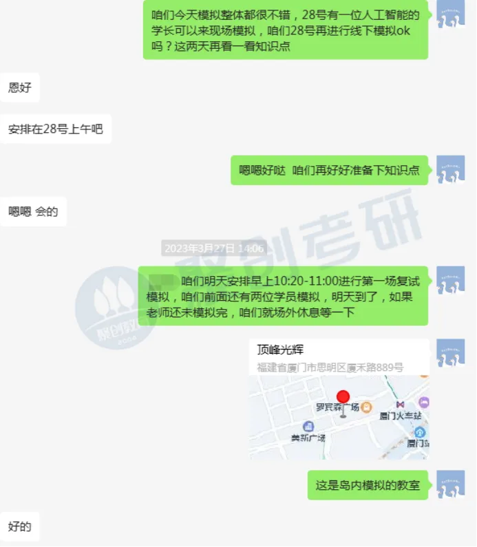针对每位同学建立专属服务群,群内进行答疑、上课通知、文书批改等相关服务