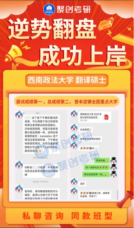 现在报名聚创考研复试调剂课程可以享受大额优惠券,有需要的同学可以直接扫码咨询~