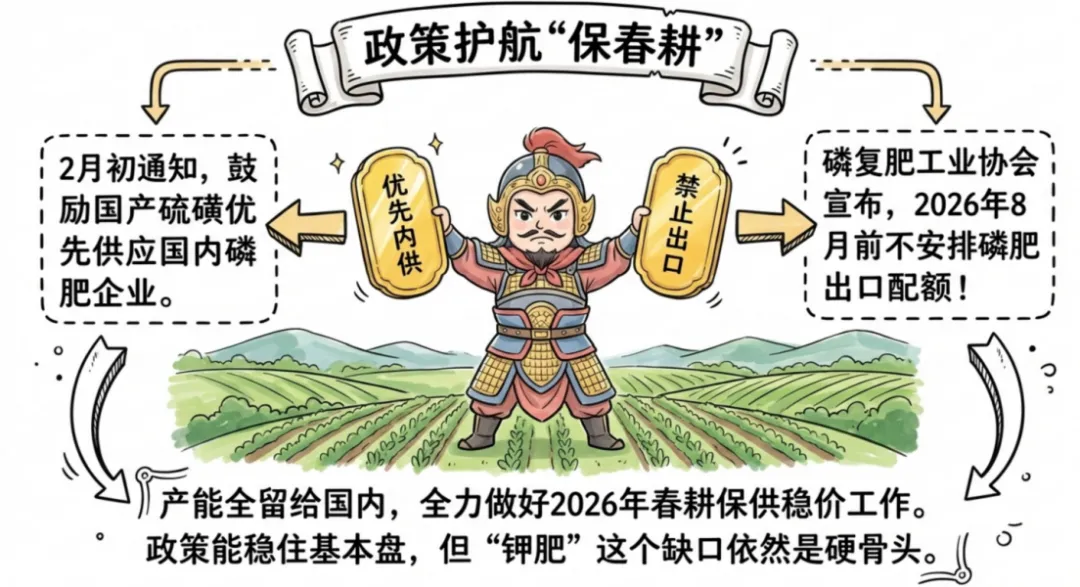 磷复肥工业协会进一步宣布,2026年8月之前不安排磷肥出口配额,把产能全留给国内春耕。