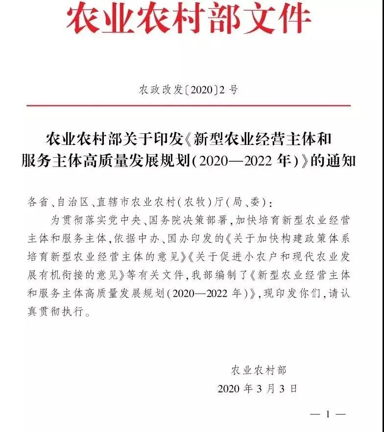为贯彻落实党中央、国务院决策部署,加快培育新型农业经营主体和服务主体,依据中办、国办印发的《关于加快构建政策体系培育新型农业经营主体的意见》《关于促进小农户和现代农业发展有机衔接的意见》等有关文件,农业农村部编制了《新型农业经营主体和服务主体高质量发展规划》。本规划中的新型农业经营主体和服务主体包括家庭农场、农民合作社和农业社会化服务组织。本规划与其它相关规划进行了衔接协调,将作为指导各地开展新型农业经营主体和服务主体培育发展工作的重要依据。