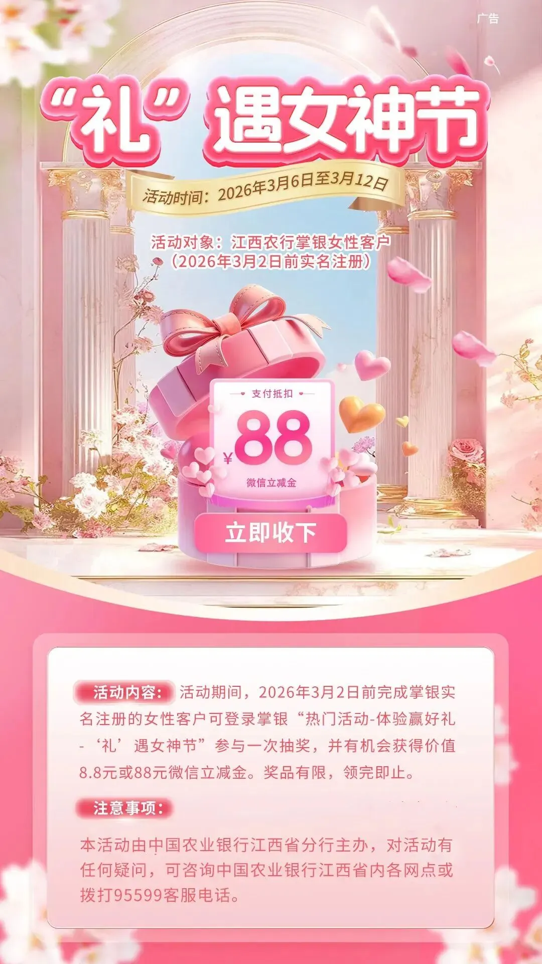 >农行【有礼】“礼”遇女神节,共赴女神之约!