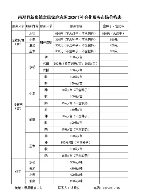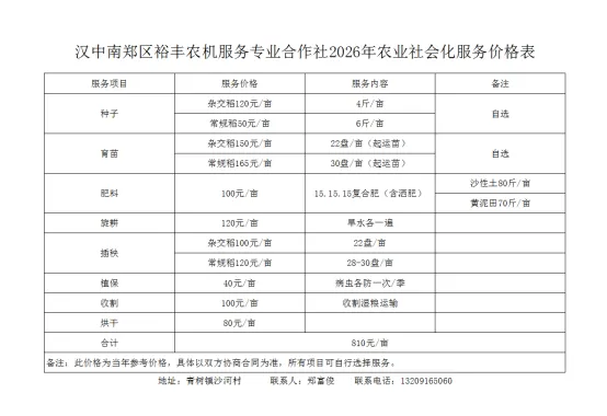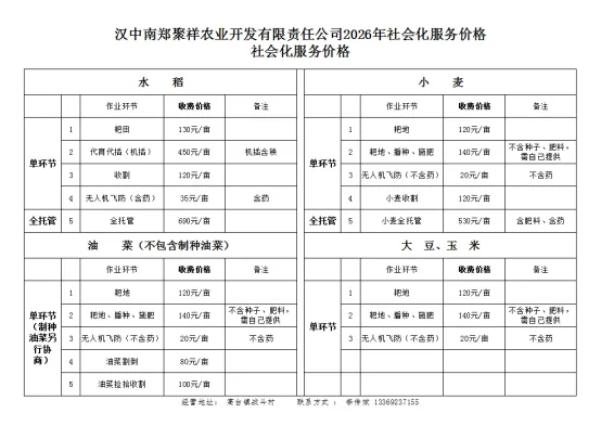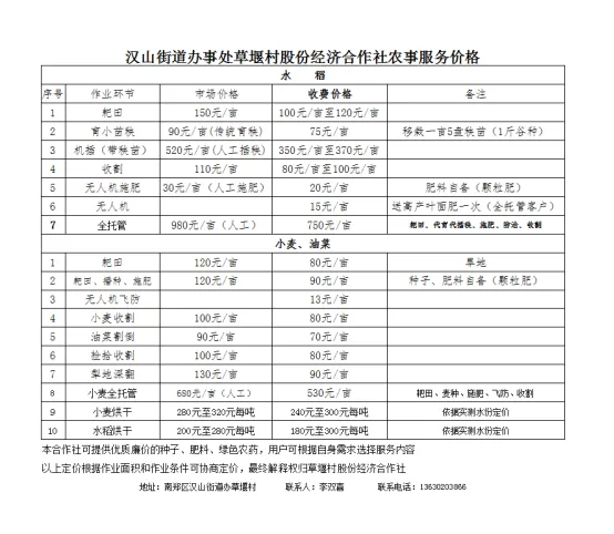 各组织服务区域、服务项目、收费标准、联系方式已统一公示,广大农户可就近联系、对比选择。