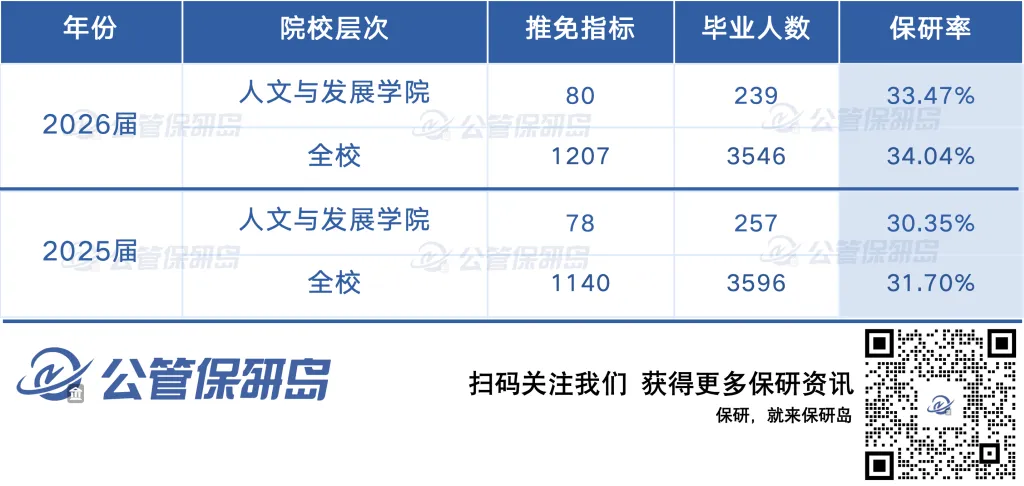 ● 中国农业大学人文与发展学院26届保研名额增加2人,保研率上涨3.12%。