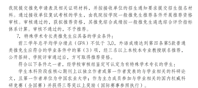 2025年,中国农业大学人文与发展学院发布了《推荐2026届优秀应届本科毕业生普通类和特殊学术专长类免试攻读研究生工作通知》,文件对推荐条件、综合成绩等内容作出了相应规定。