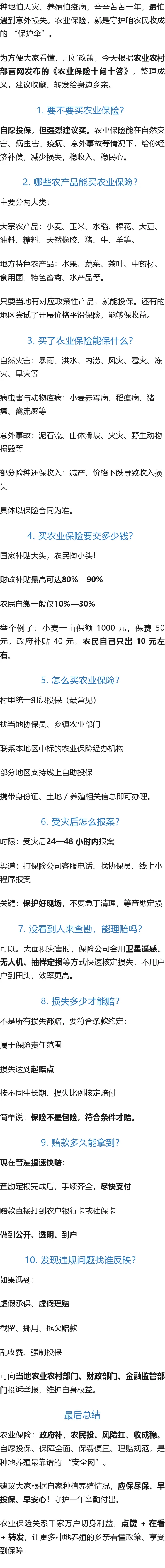 >农业保险十问十答!农业农村部官方解读,种地养殖必看