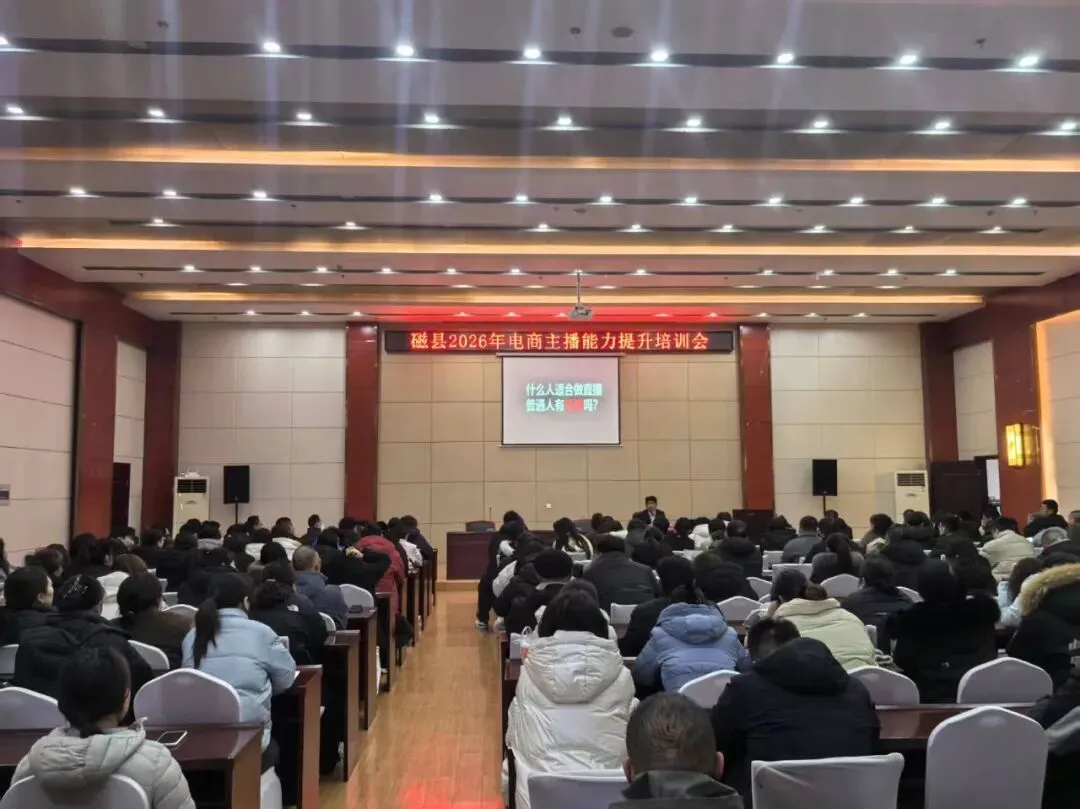 为提升农业农村从业人员的电商应用能力,拓宽农产品销售渠道,培育本土电商直播人才,2026年3月6日,磁县农业农村局在磁州宾馆成功举办“磁县农业农村电商主播培训班”。来自全县的农资经营门店负责人、乡镇干部、“新农人”代表、种养殖大户、家庭农场主及创业青年等共220余人人参加培训。