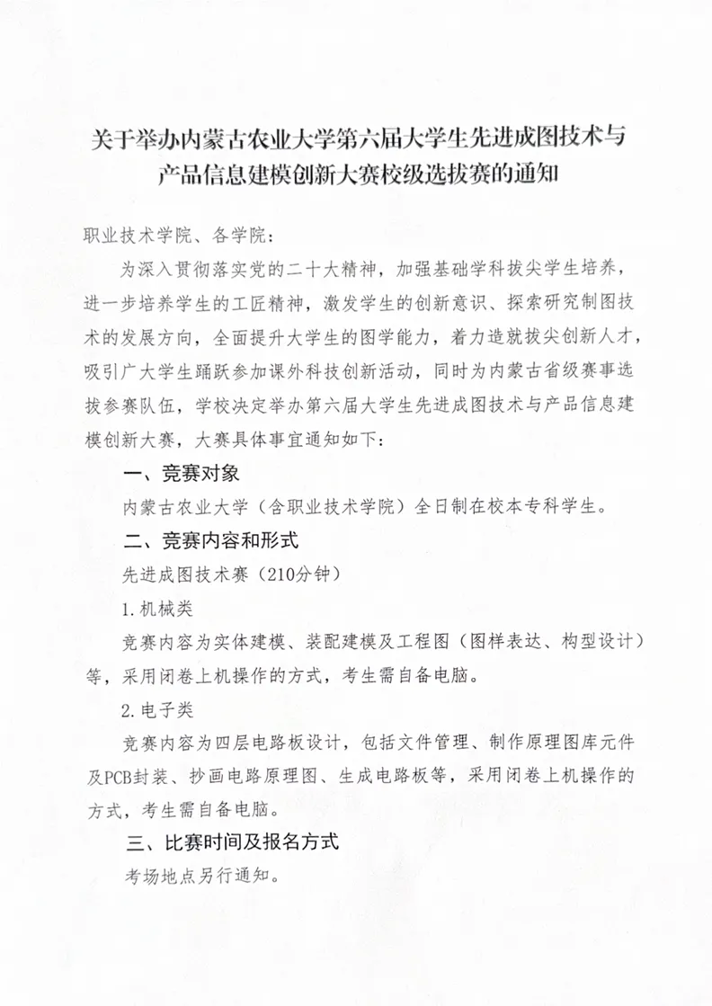 【机电·资讯】关于举办内蒙古农业大学第六届大学生先进成图技术与产品信息建模创新大赛校级选拔赛的通知