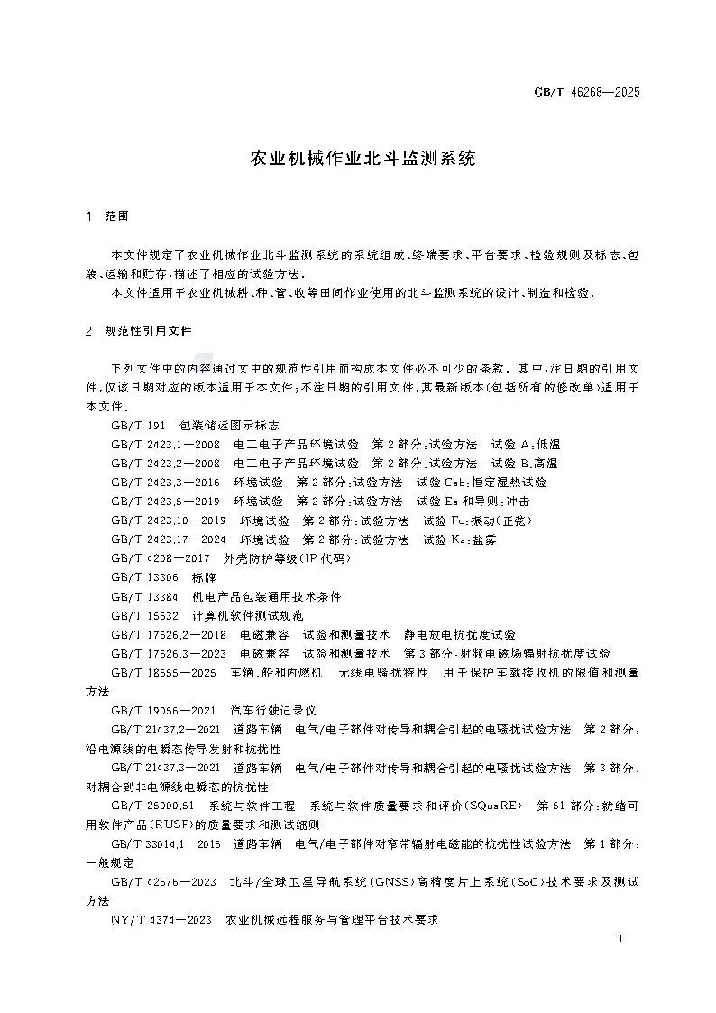 【标准】GB/T 46268-2025农业机械作业北斗监测系统