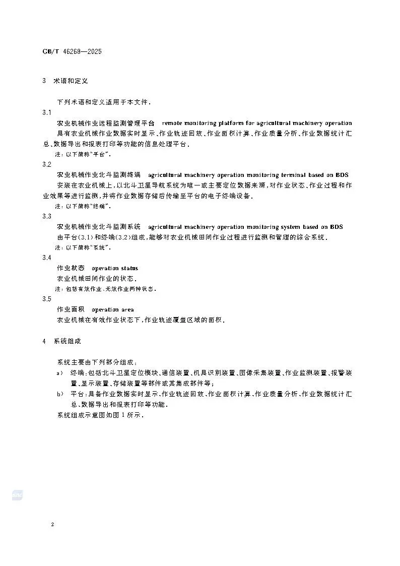 >【标准】GB/T 46268-2025农业机械作业北斗监测系统