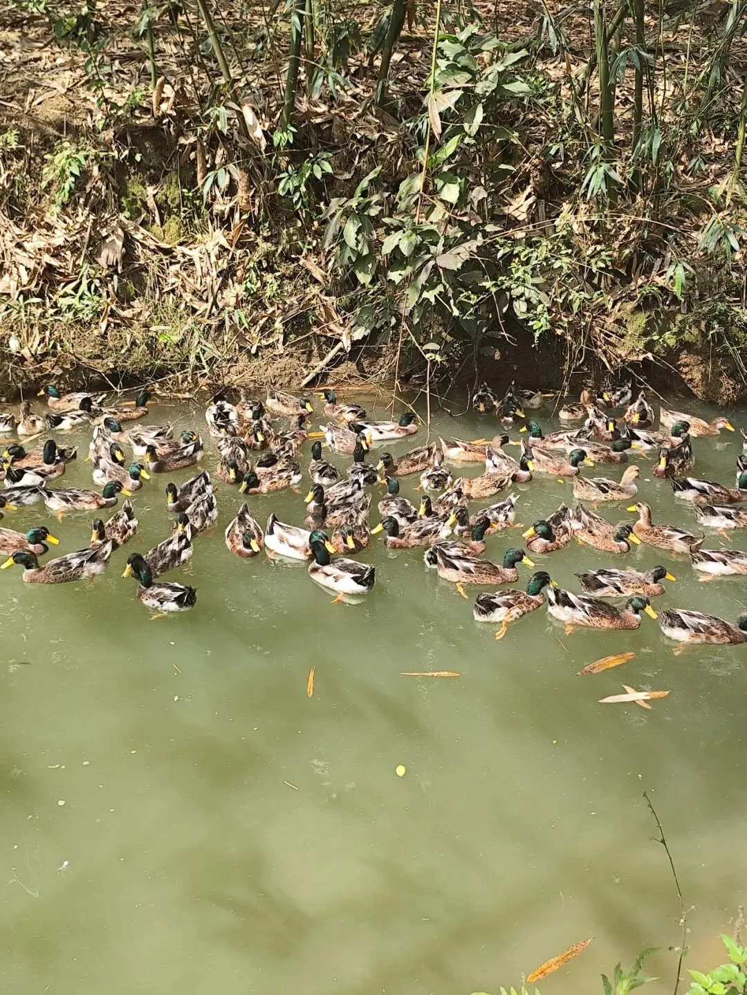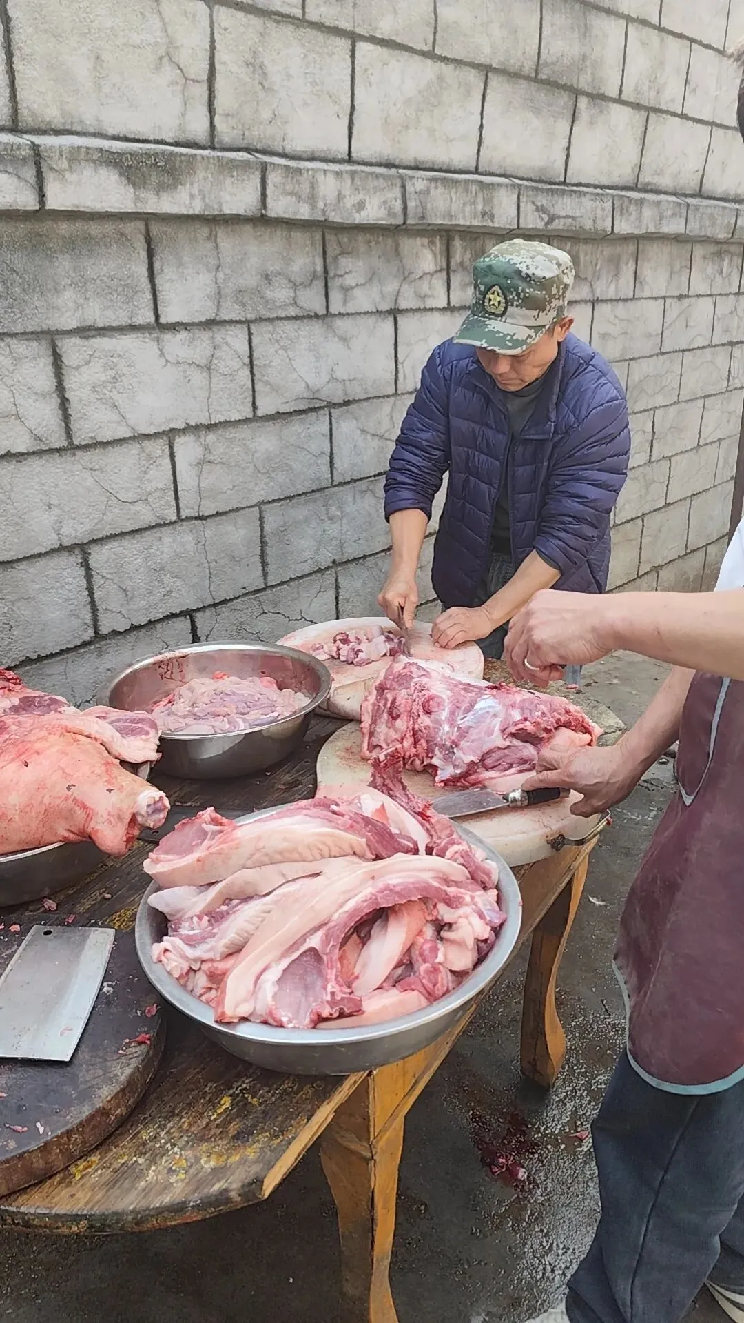交流团首站深入瑞琚农业的生态养殖基地,亲眼见证了“杀猪宴”的核心食材——现宰猪肉的精细分割过程。冯总亲自参与操作,从整猪到分块,每一步都严格遵循传统工艺与卫生标准,确保肉质鲜嫩、纹理清晰。现场陈列的猪肉色泽红润、脂肪分布均匀,充分展现了生态养殖的品质优势。此外,基地内清澈山塘中悠然游弋的绿头清水鸭,也作为优质原料代表,吸引了众人的目光。