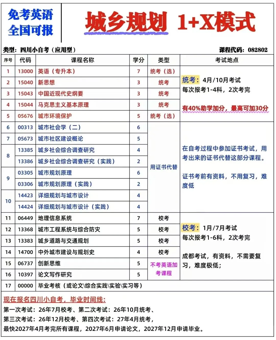 ③考试机会多:每年有2次统考考试、2次证书课程考试、2次校考和论文答辩、2次申请毕业。