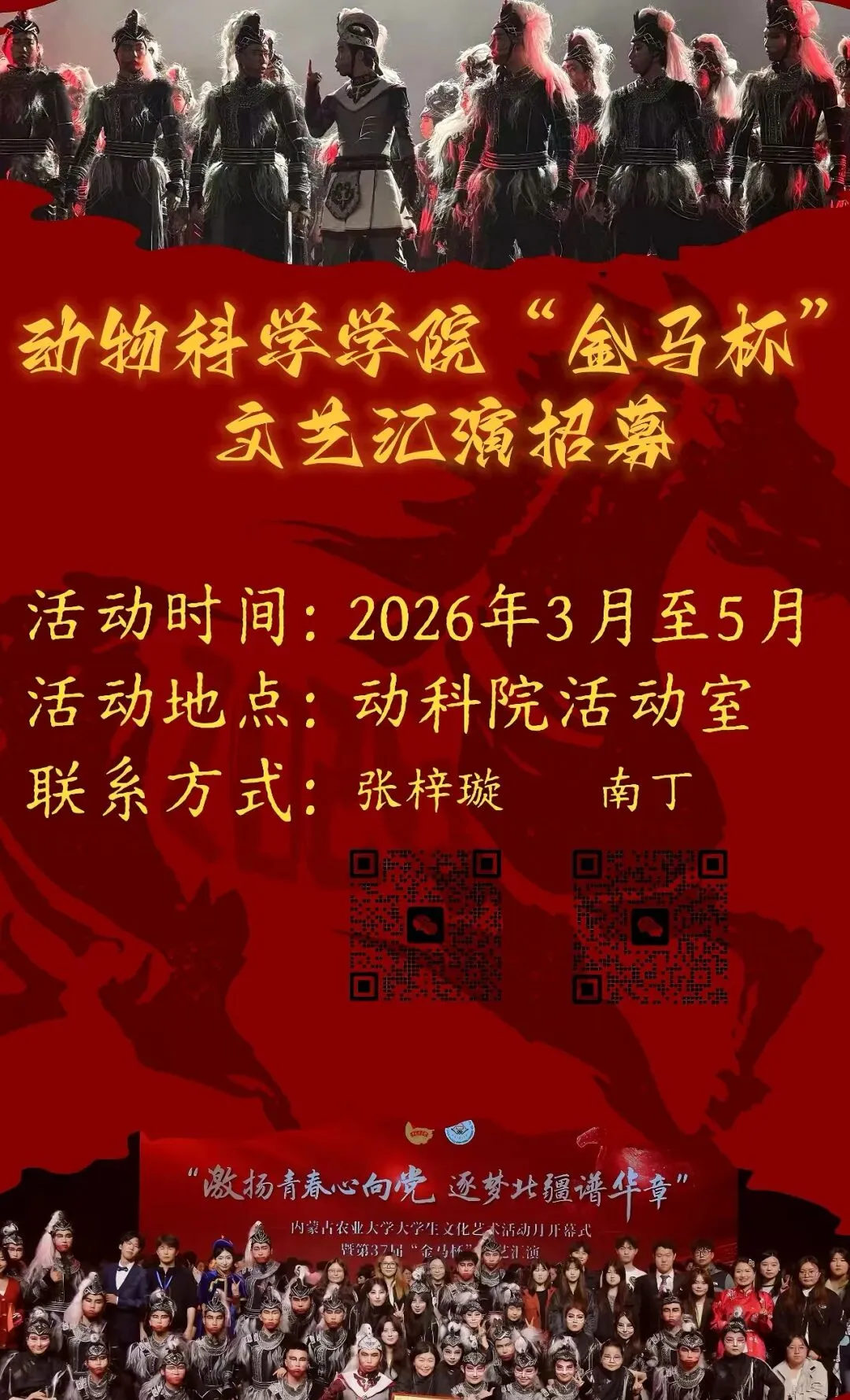 【动科·新闻汇】我院现开展内蒙古农业大学第38届“金马杯”文艺汇演演员招募啦