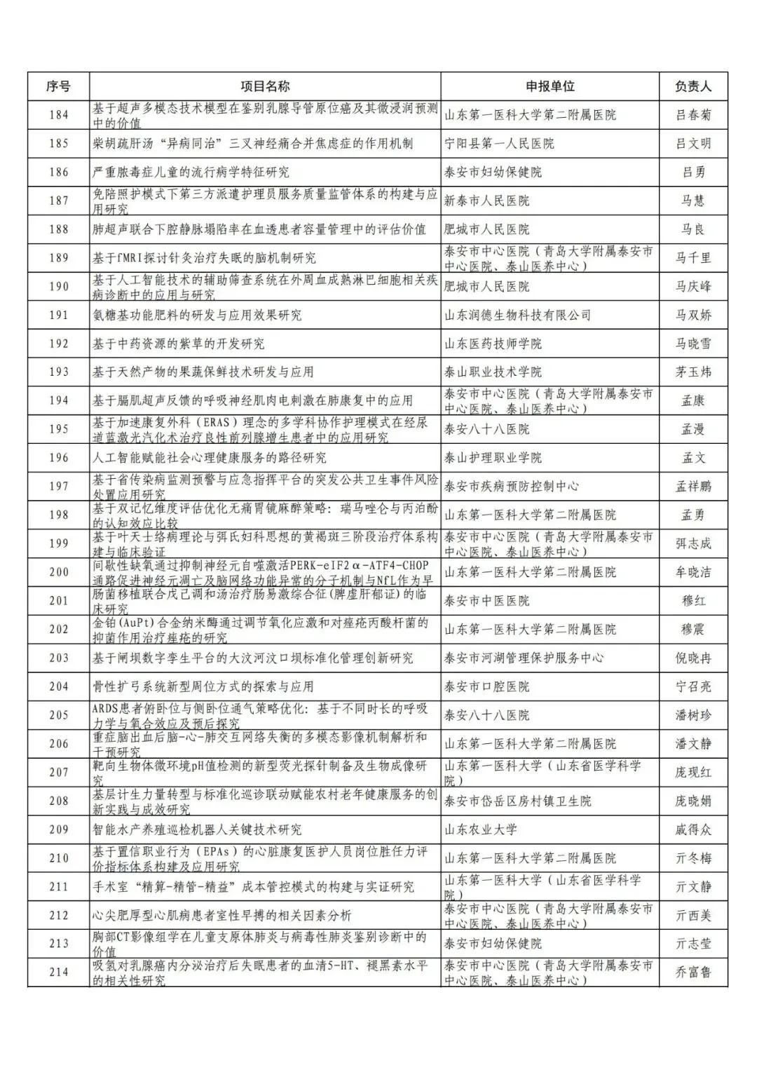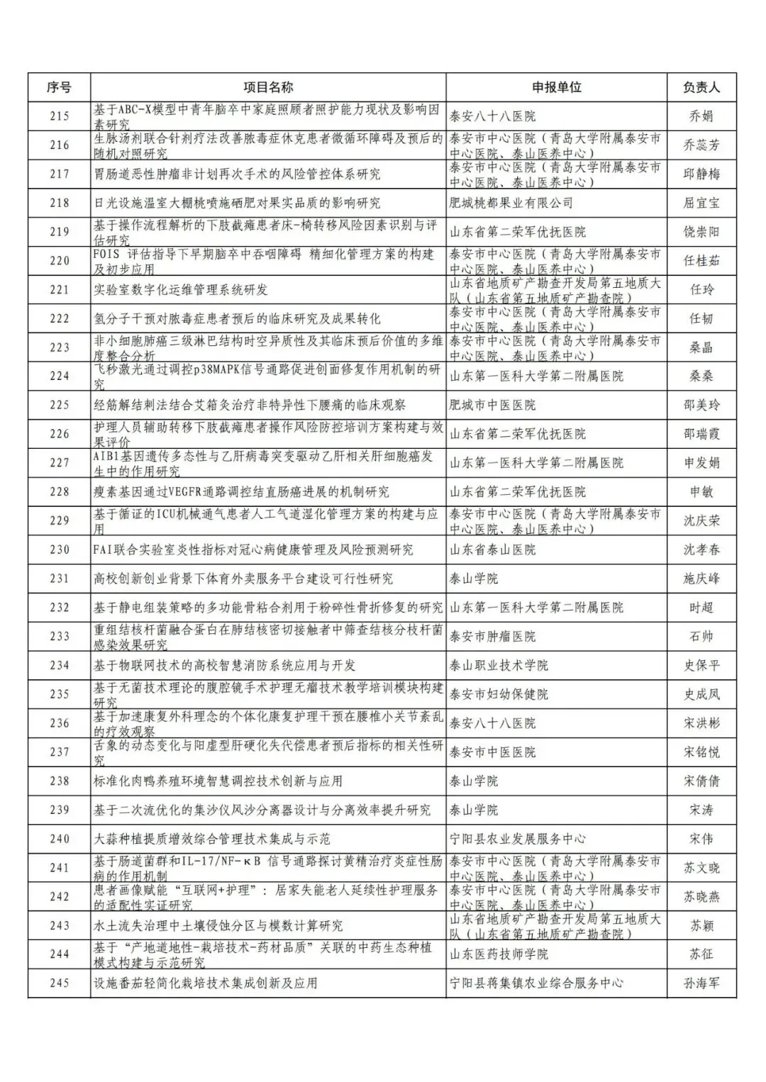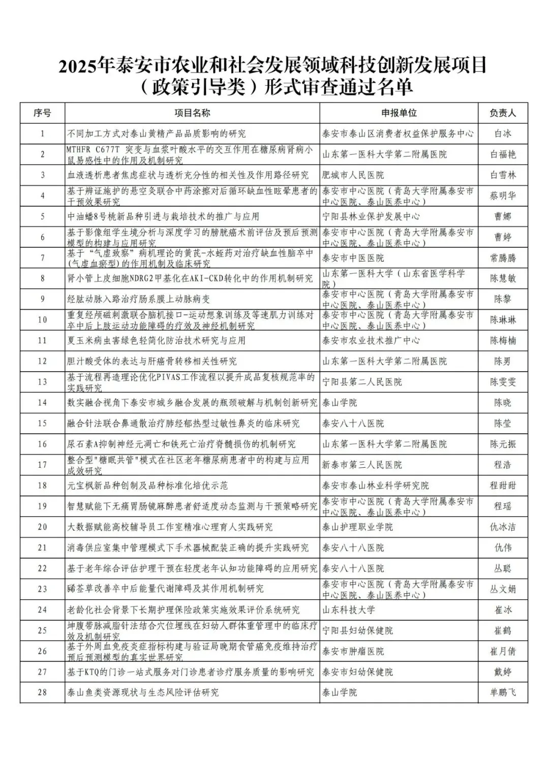 附件:2025年泰安市农业和社会发展领域科技创新发展项目(政策引导类)形式审查通过名单