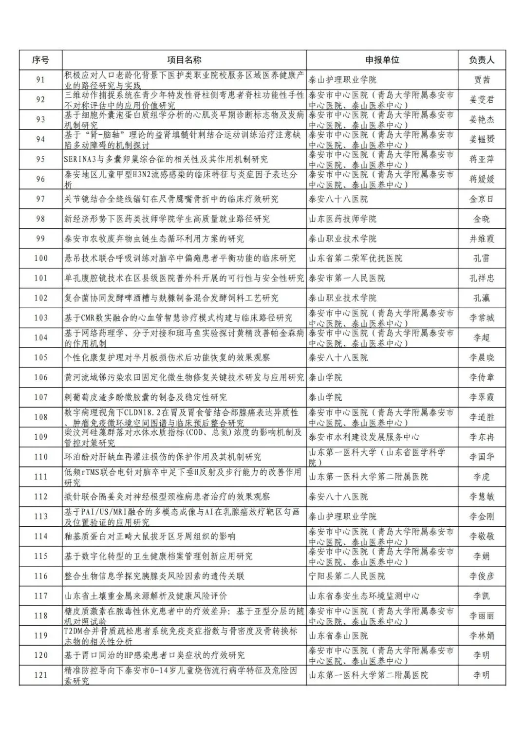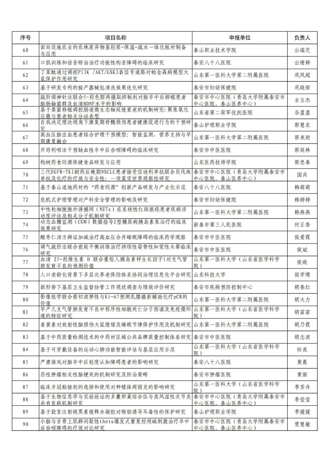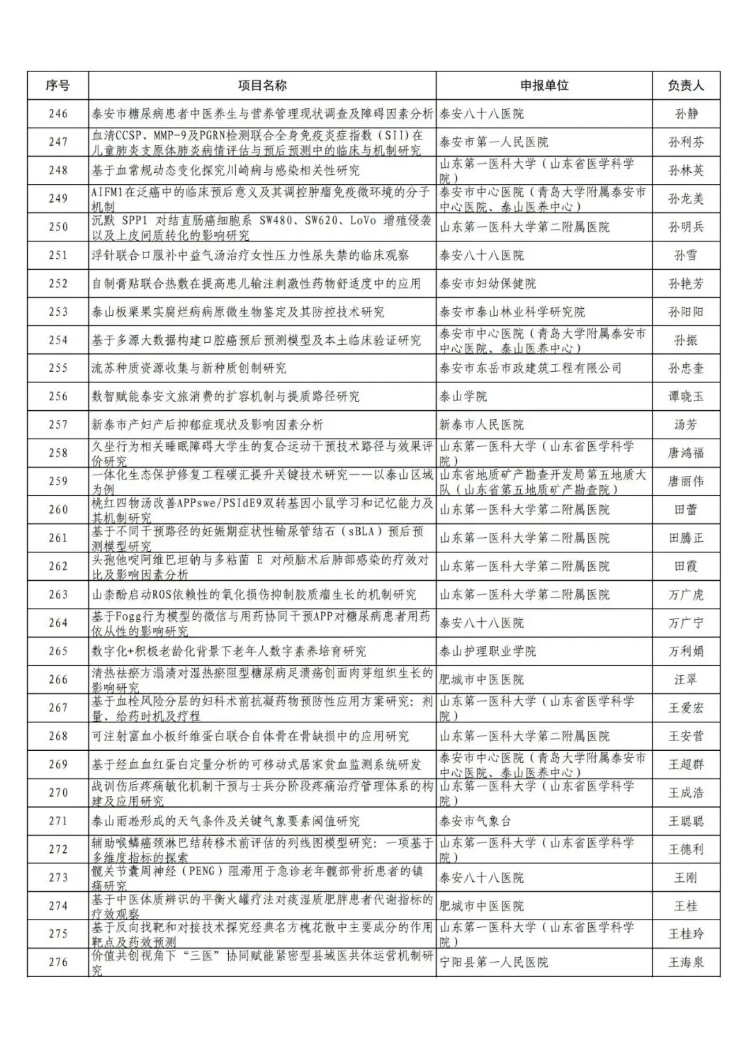 附件:2025年泰安市农业和社会发展领域科技创新发展项目(政策引导类)形式审查通过名单