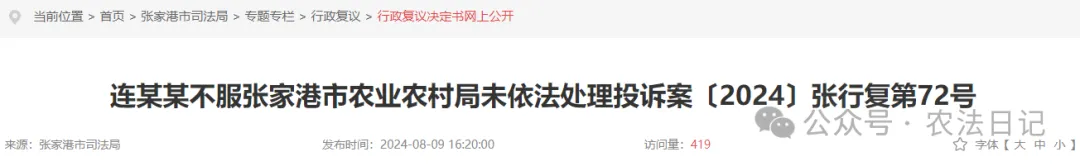 确认张家港市农业农村局未将投诉事项处理情况告知申请人的行为违法。