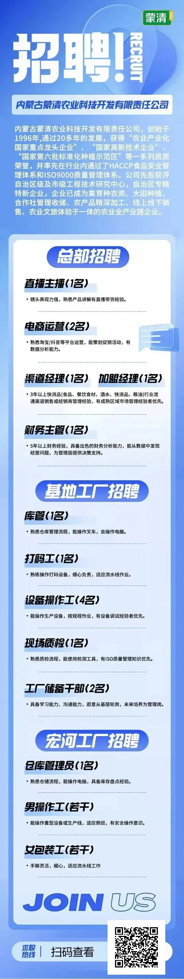 >内蒙古蒙清农业科技开发有限责任公司招聘简章
